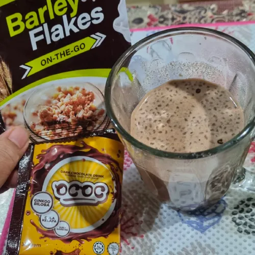 ” Pagi2 dah minum barley flakes & minuman dark chocolate OCOC.Bagi power sikit nak masuk kelas mengajar. “