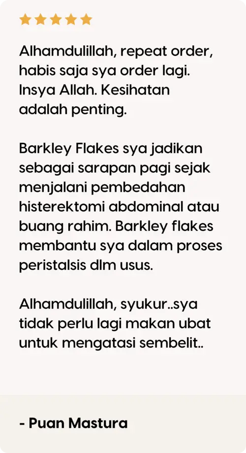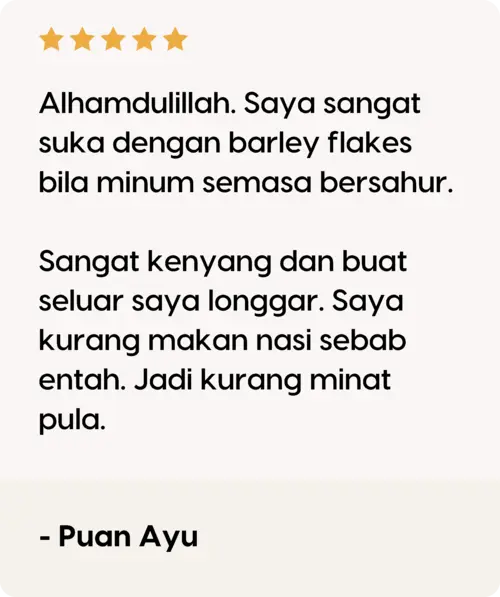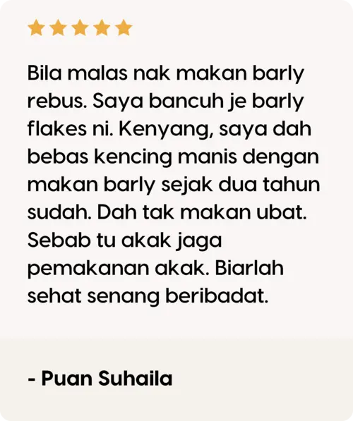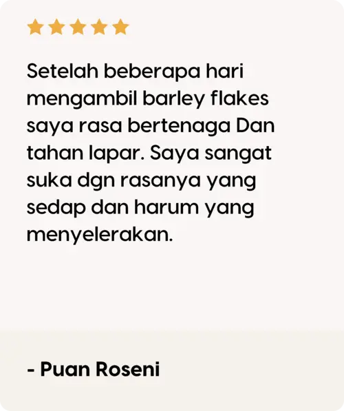 Barley Flakes tidak menggunakan gula putih. Kandungan gula yang tinggi akan mengurangkan pengeluaran Orexin. Lagi sikit Orexin, lagi kerap anda menguap sepanjang hari.